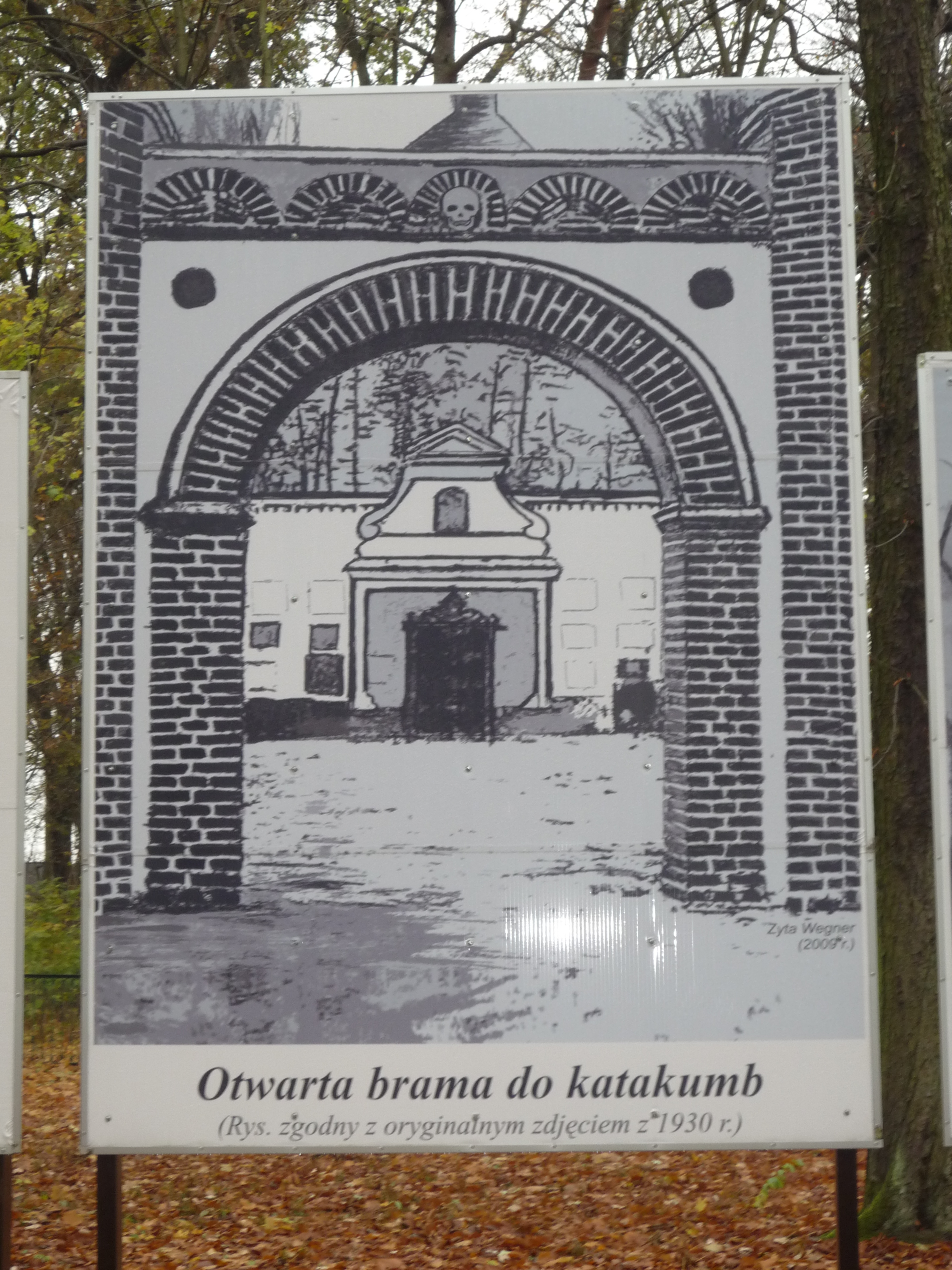 Plansza ze zdj?ciem rysunku bramy do katakumb, fot. redakcja 2012 r.
