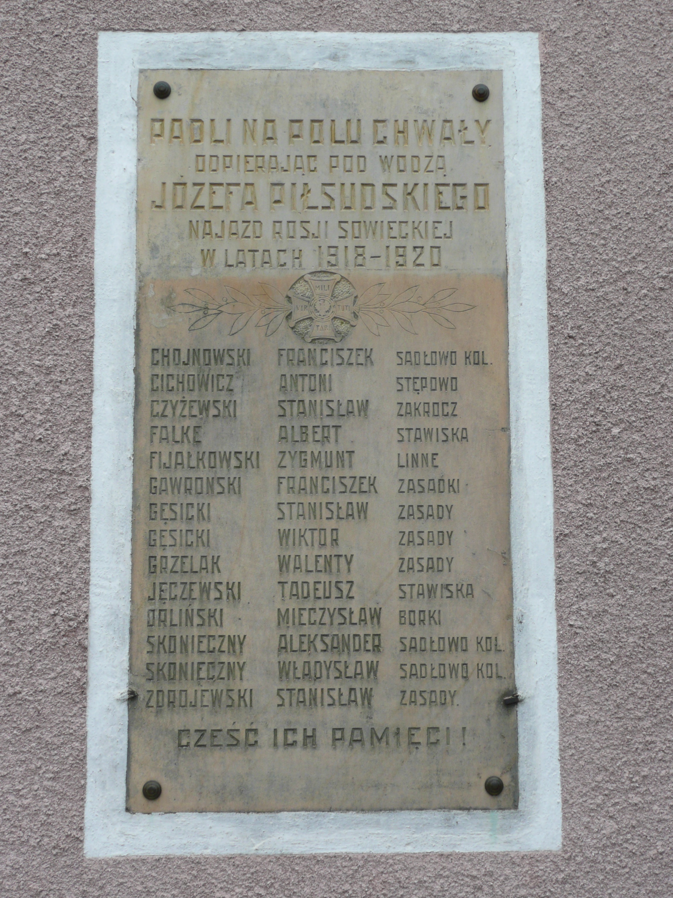 Tablica upami?tniaj?ca poleg?ych w czasie wojny z bolszewikami 1918-20, umieszczona po lewej stronie od wej?cia g?體nego ko?cio?a ?w. Jana Chrzciciela w Sad?owie (fot.P.Romanowski, 2011r.)